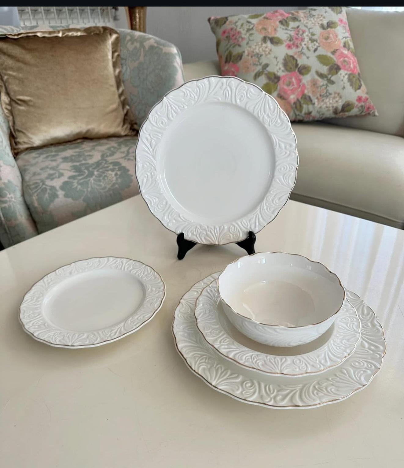 Upgrade your dining experience with this 24pcs Luxury Embossed White Porcelain Dinner Set with Gold Rim, designed to bring sophistication and timeless beauty to any table setting. Crafted from high-quality porcelain, each piece features intricate embossed detailing paired with a refined gold trim—perfect for homes that appreciate modern elegance.