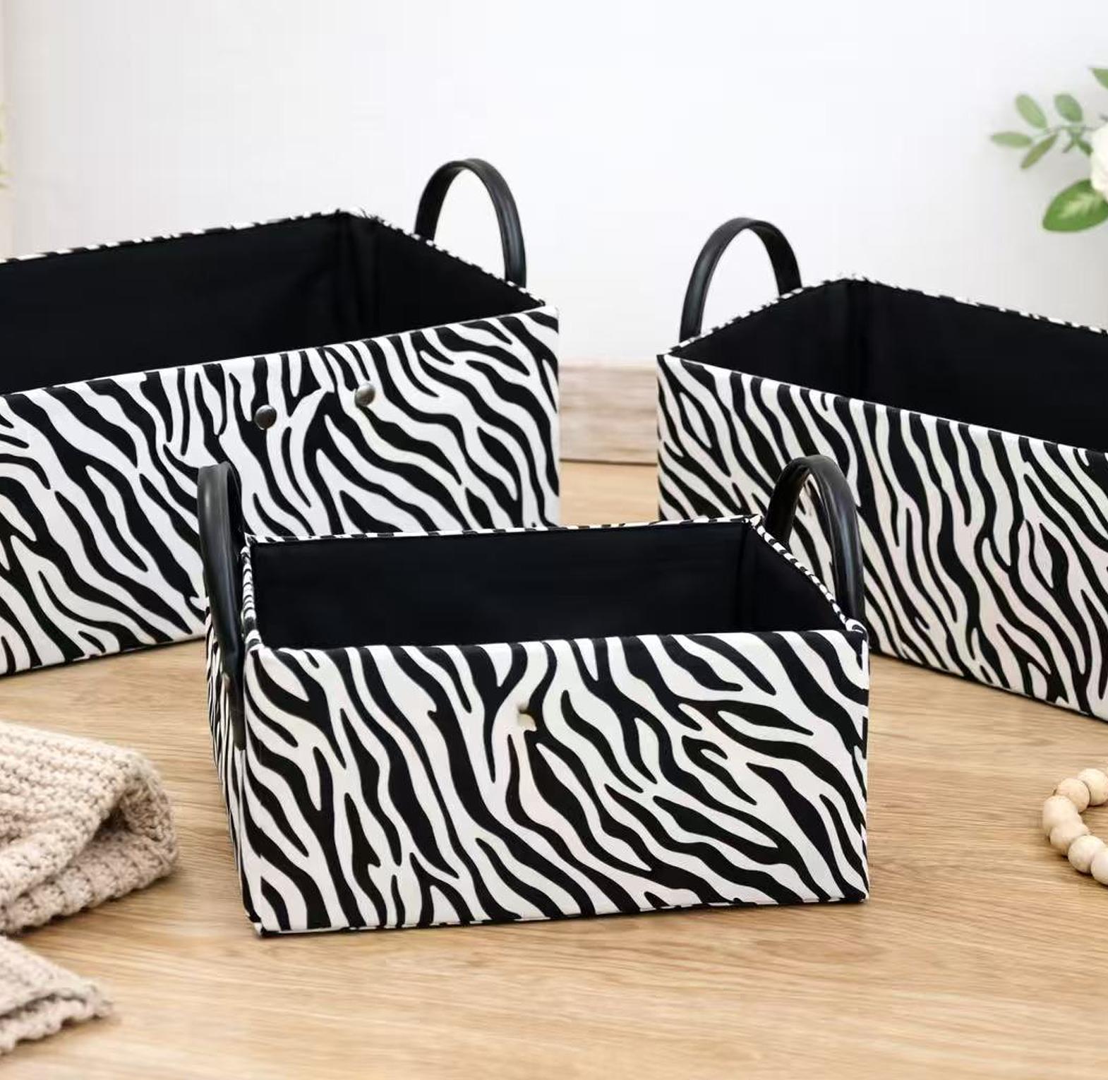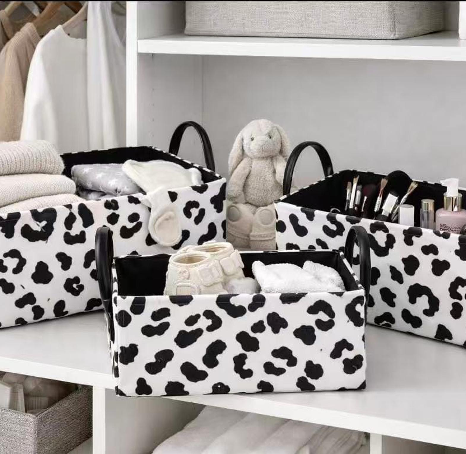 Keep your home neat and stylish with this 3-piece animal print storage basket set, designed for versatile home organization and storage. Made with durable fabric and reinforced with sturdy handles, these baskets are ideal for organizing toys, clothes, towels, baby essentials, cosmetics, and household items. The trendy animal print design adds a modern decorative touch while keeping your spaces clutter-free. Perfect for use in wardrobes, shelves, nurseries, bedrooms, bathrooms, and living areas.