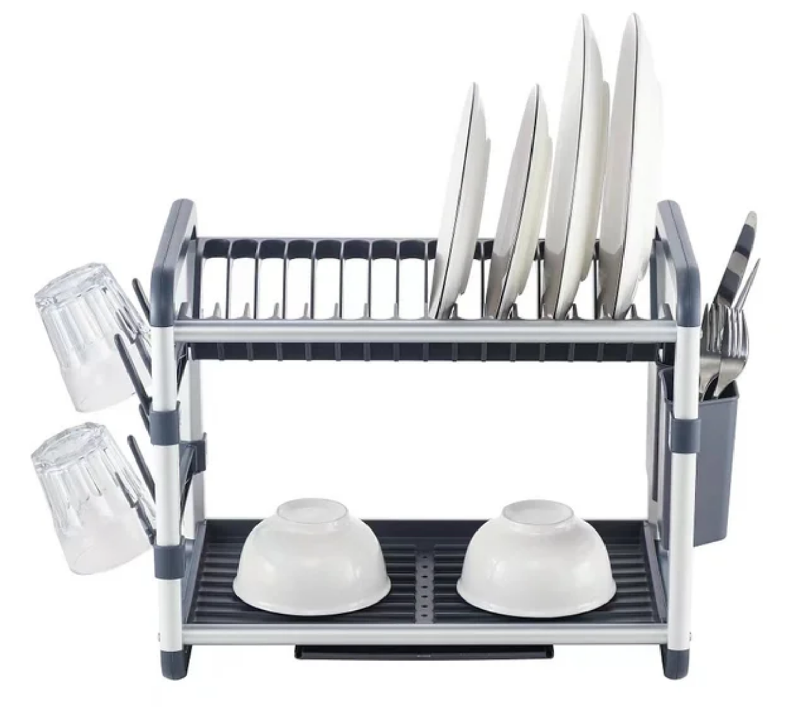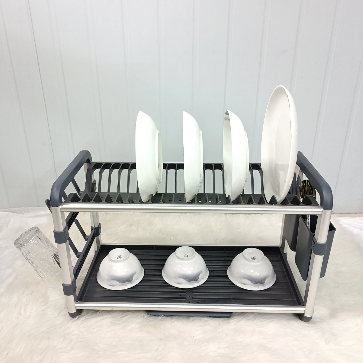 3&2- Tier Aluminium Dish Rack with Cutlery & Cup Holders