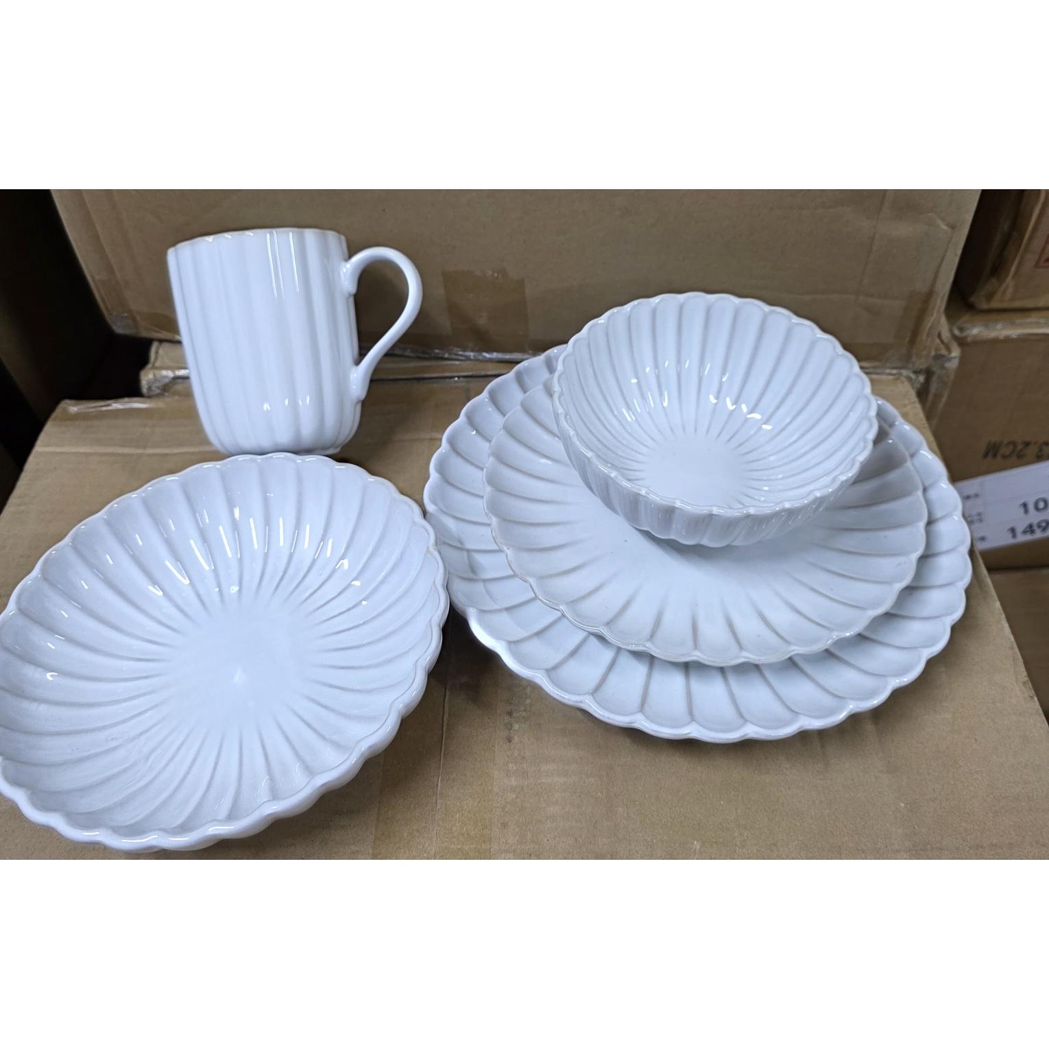 Elevate your dining table with this 30pcs European Scalloped Ceramic Porcelain Dinnerware Set, designed for both beauty and durability. Each piece features a delicate scalloped rim that adds timeless elegance to your meals. Made from high-quality porcelain, this set is microwaveable and dishwasher safe, perfect for everyday use or special occasions. The set includes: