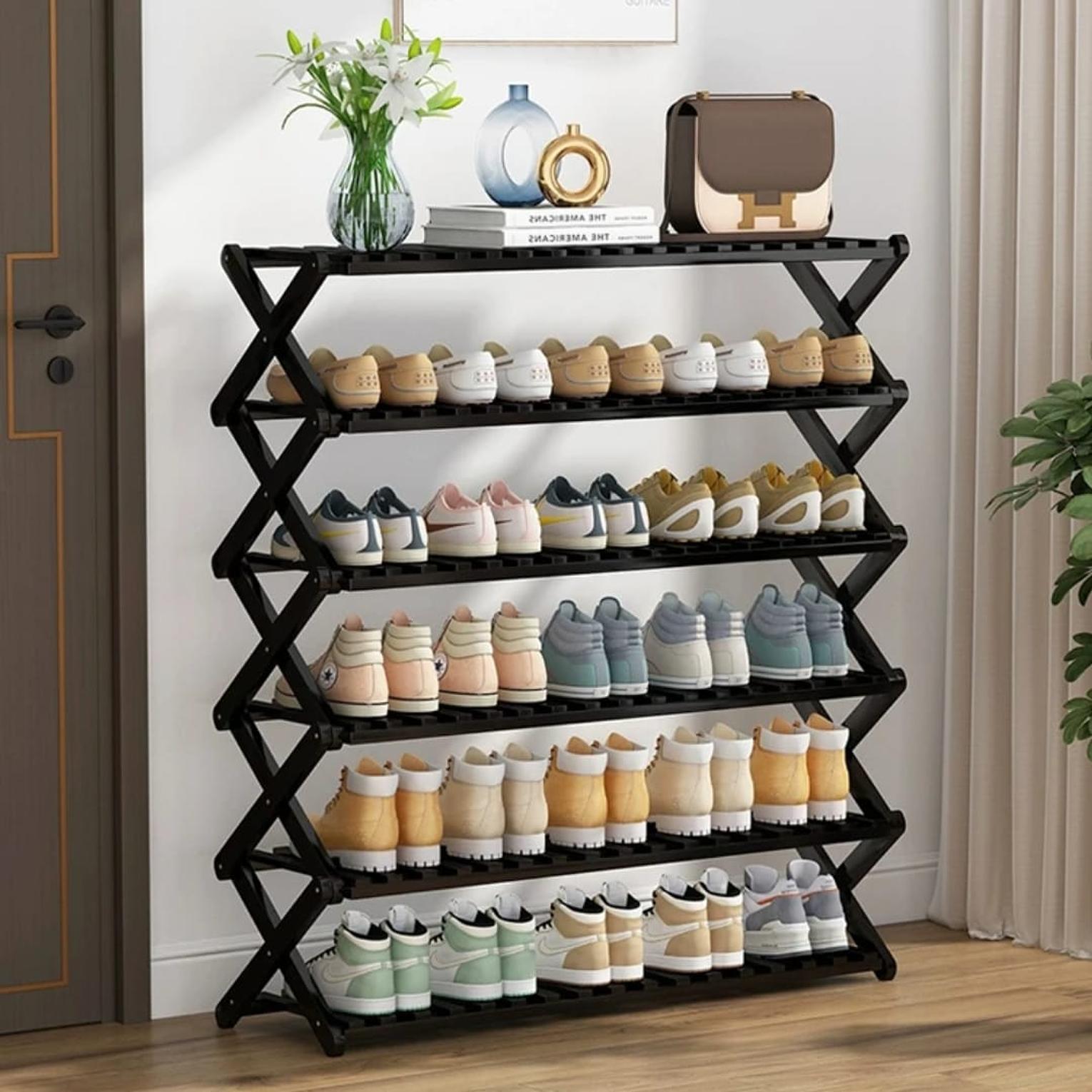 ✔ 6-tier bamboo shoe rack for maximum storage