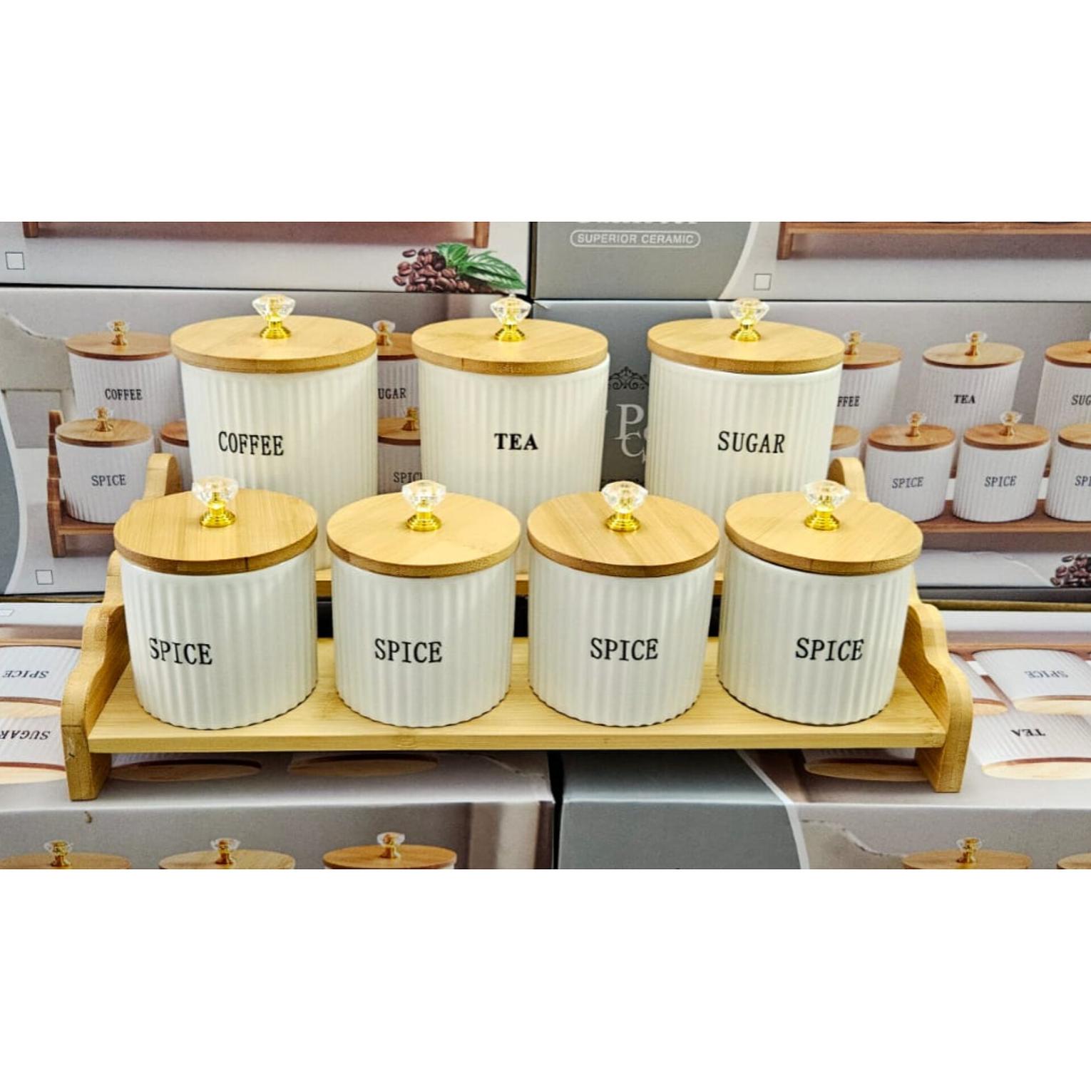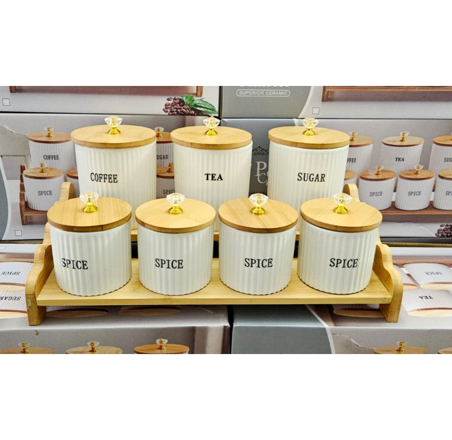 This 7-Piece Ceramic Kitchen Canister Set combines timeless style with everyday practicality. Crafted from high-quality ceramic, each canister is paired with a natural bamboo lid that provides an airtight seal to preserve freshness and prevent moisture. The matching bamboo stand keeps all canisters neatly arranged, saving counter space while adding a warm, modern touch to your kitchen décor. Ideal for storing tea, coffee, sugar, spices, or dry foods, this set is perfect for both daily use and stylish countertop display.