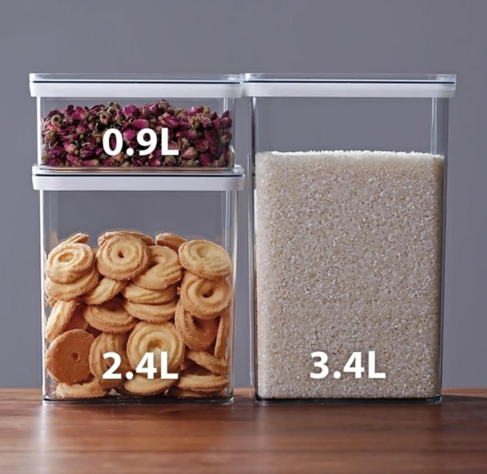 Available in 2.4L and 3.4L capacities, these containers are designed to maximize space while ensuring your pantry stays neat and stylish.