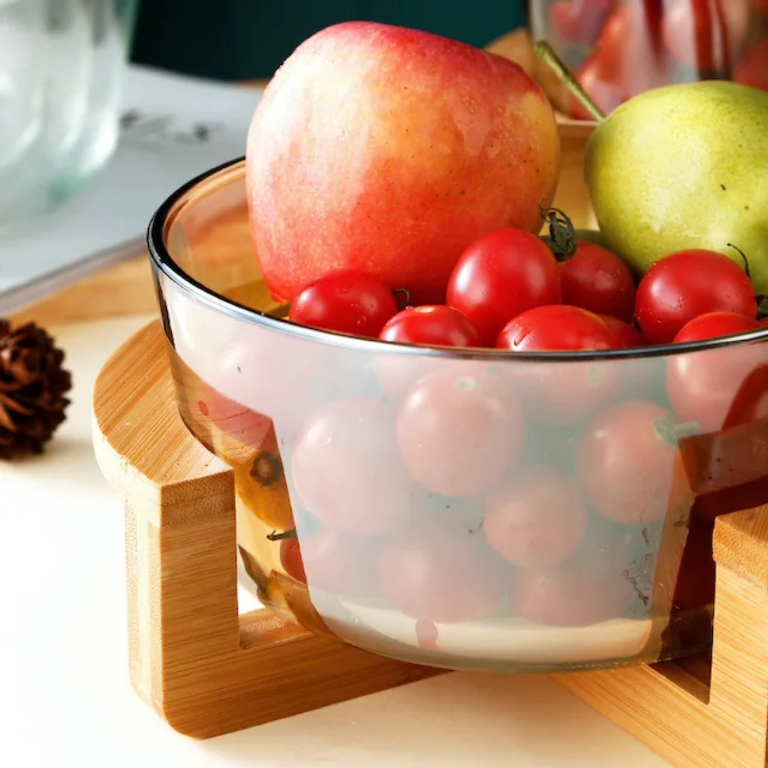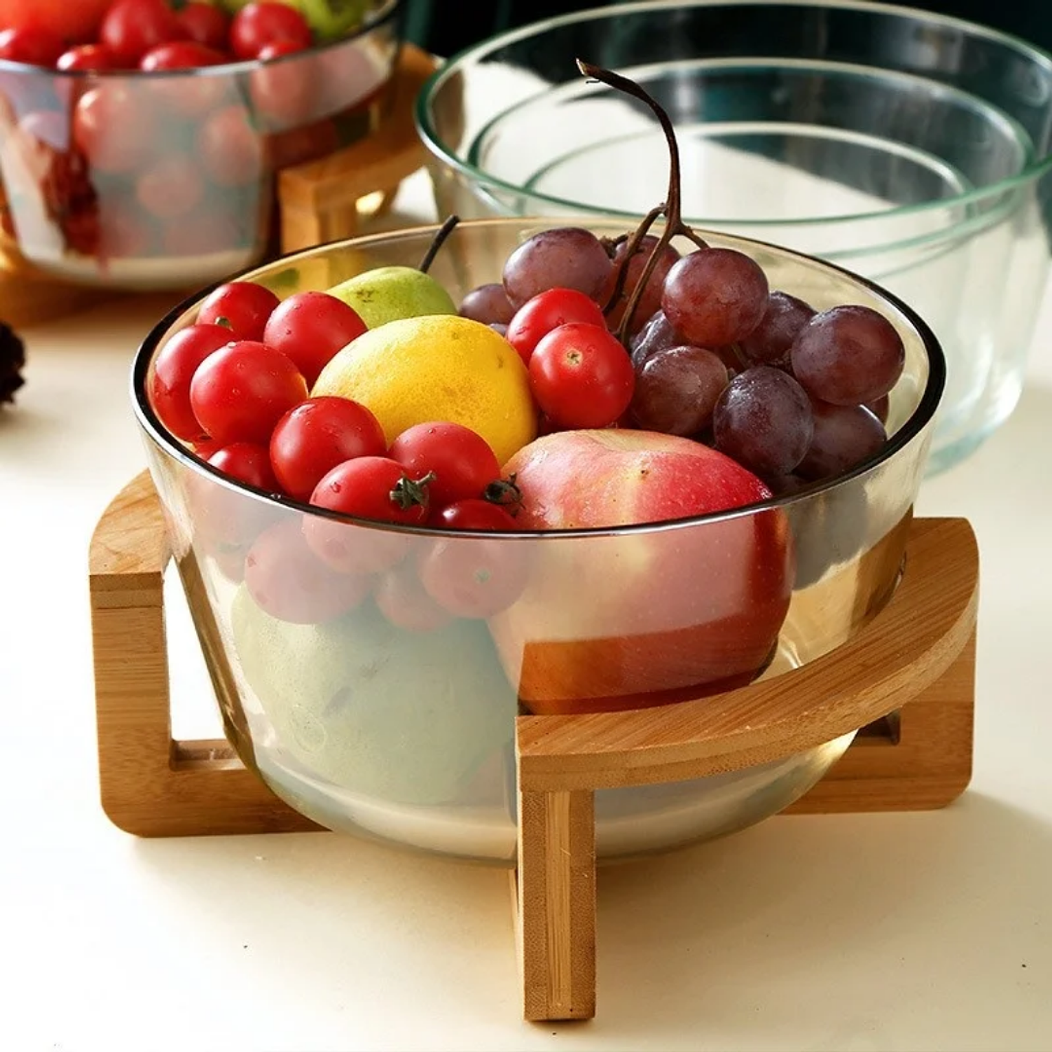 Add a touch of modern elegance to your dining experience with this Glass Salad Bowl with Wooden Base. Crafted from high-quality clear glass, it beautifully showcases your salads, fruits, or desserts, while the sturdy wooden stand adds warmth and stability. Perfect for both everyday meals and special occasions, this bowl combines functionality with aesthetic appeal. A great addition to any Kenyan kitchen or dining table, ideal for serving guests in style.