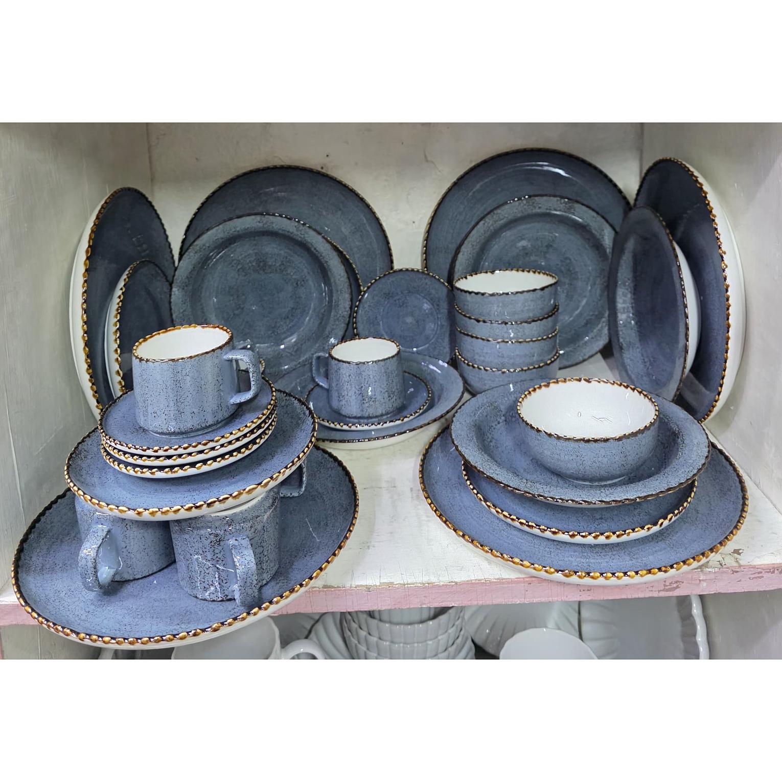 This complete dinnerware set is microwave-safe and dishwasher-friendly, offering both luxury and practicality for modern homes. Ideal for family meals, entertaining guests, or formal dining, it balances durability with visual elegance. Available in bluish and grey tones, the set complements contemporary, classic, and minimalist table settings.