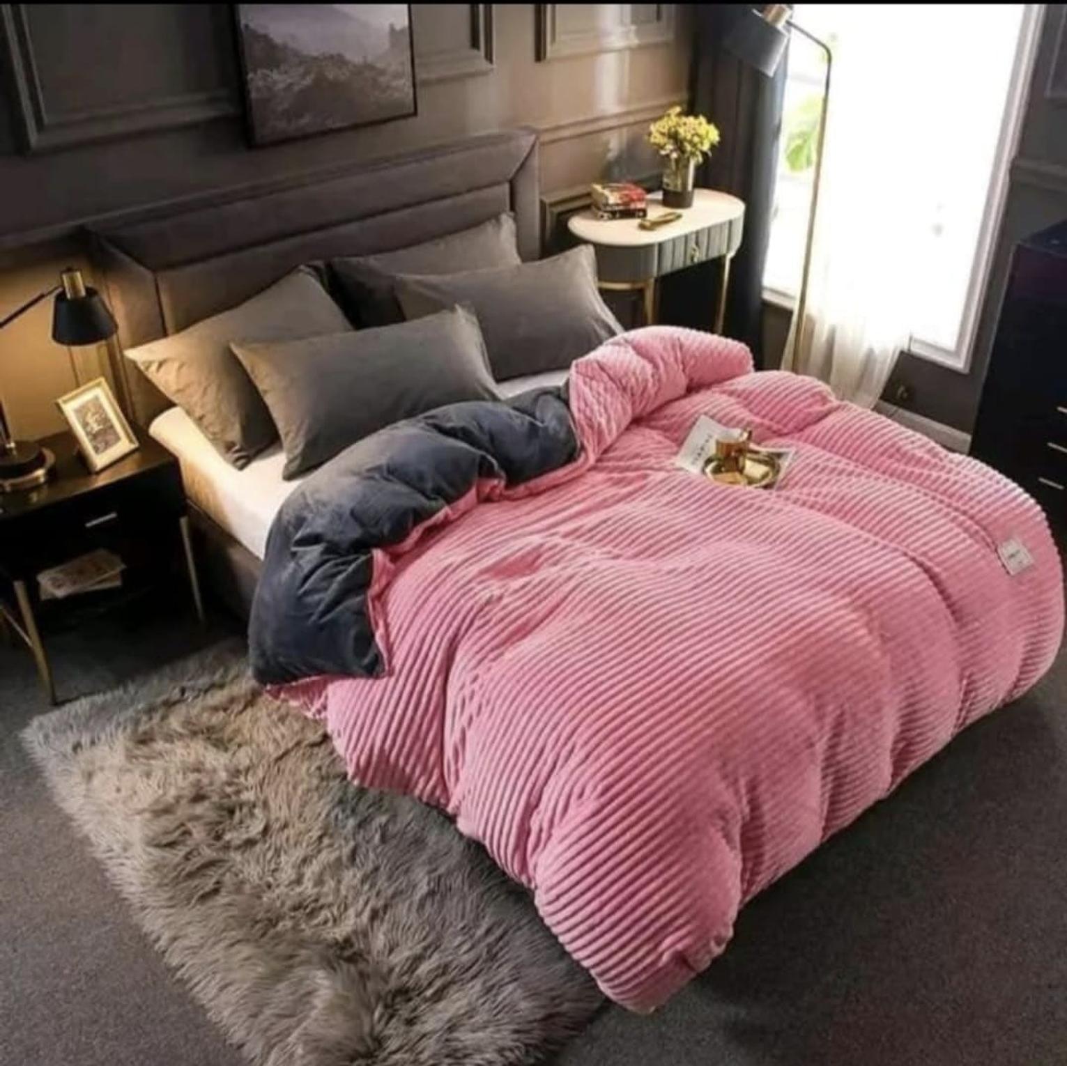 ▪️ Soft and warm velvet duvet for extra comfort ▪️ Stylish ribbed/striped texture for a modern bedroom look ▪️ Thick and cozy for colder weather ▪️ Durable and easy to maintain Set Includes: ▪️ 1 Velvet Duvet ▪️ 1 Fleece Bedsheet ▪️ 2 Pillowcases Perfect for creating a warm, elegant, and comfortable bedroom setup.