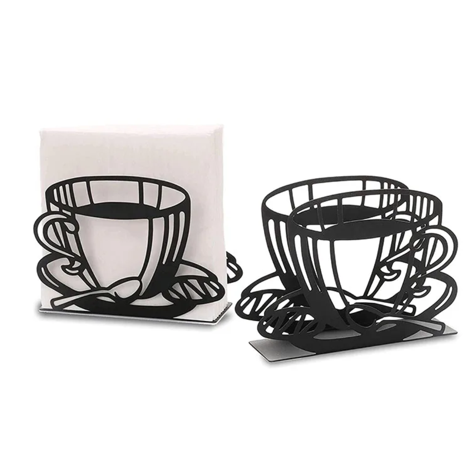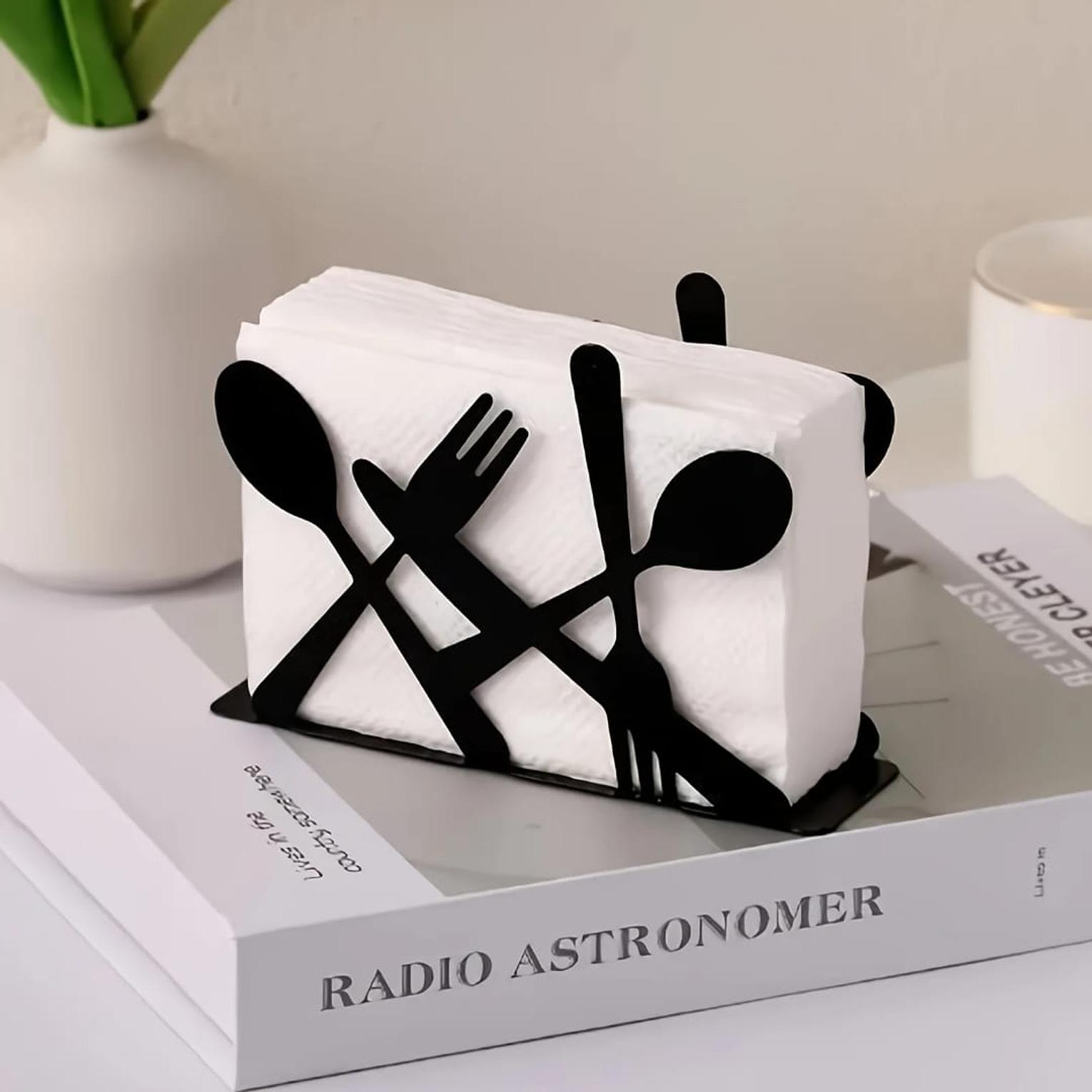 Stylish and modern serviette holder designed in a unique metallic coffee cup/cutlery shape. Adds a decorative touch to your dining table while neatly holding your serviettes in place. ✓ Durable metallic finish ✓ Elegant and functional design ✓ Perfect for kitchen, dining table, or café setup