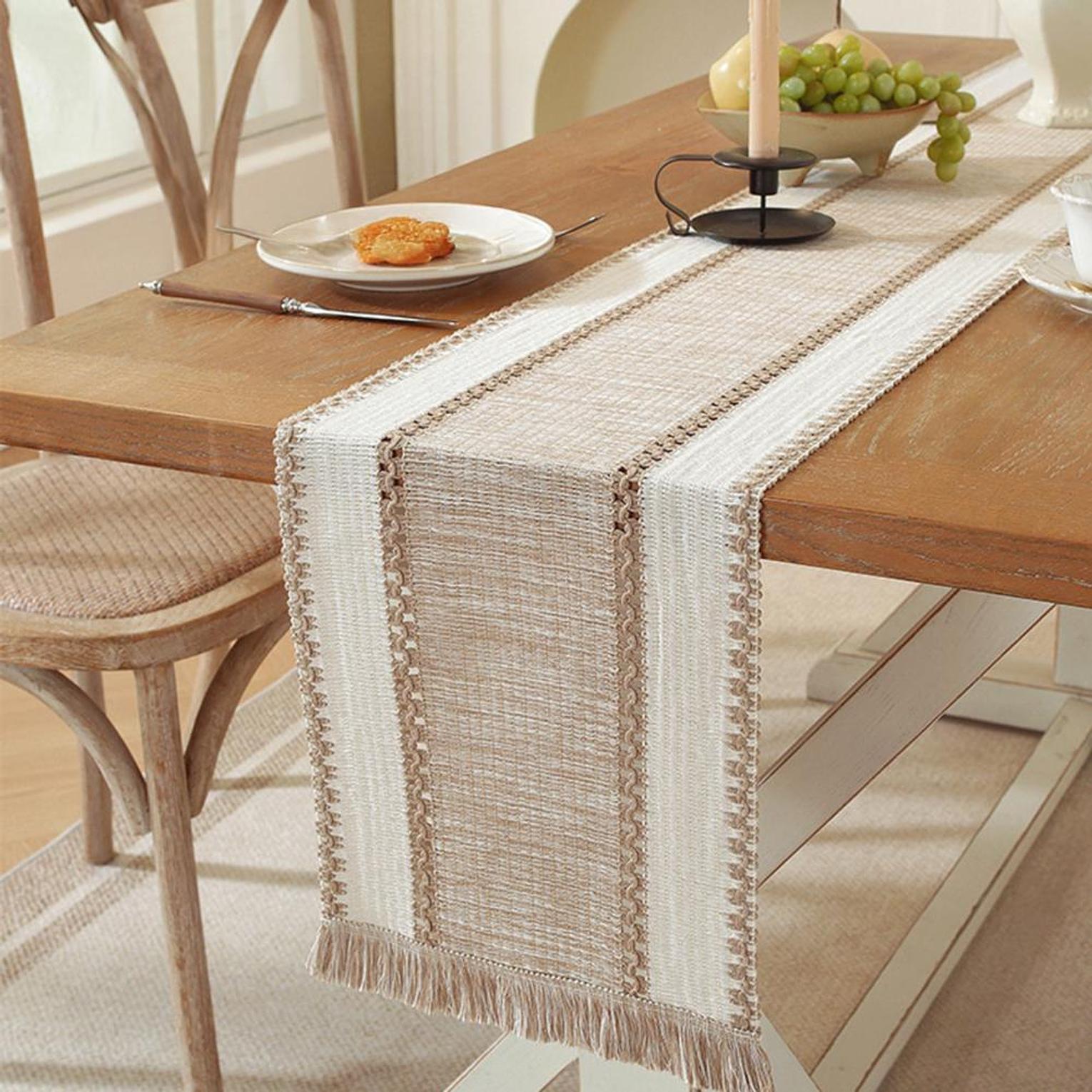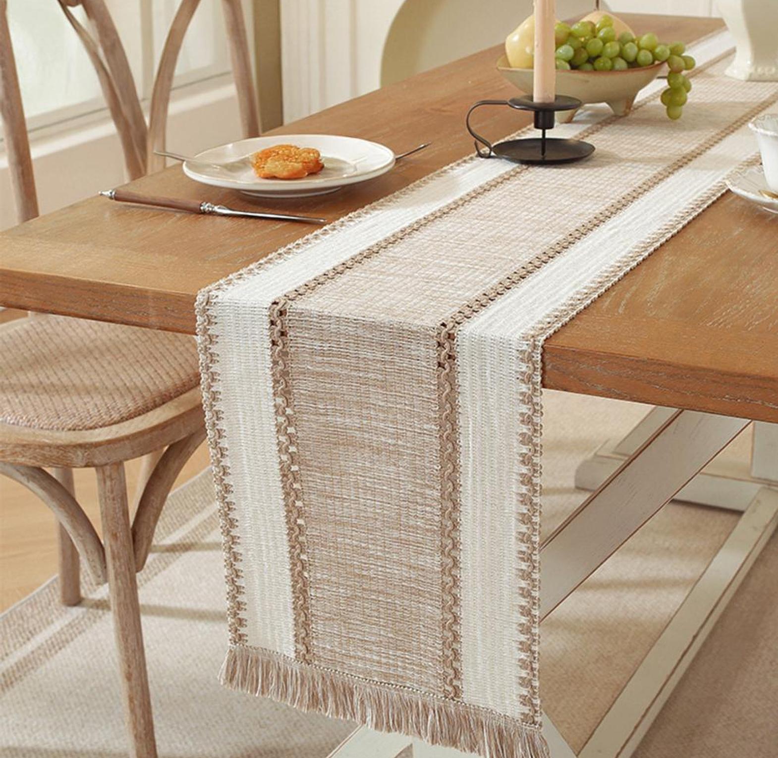 Elevate your home décor with this Nordic boho table runner, beautifully handwoven to bring a natural, stylish touch to any setting. Featuring a textured woven design with soft tassel edges, it blends modern simplicity with cozy bohemian charm.