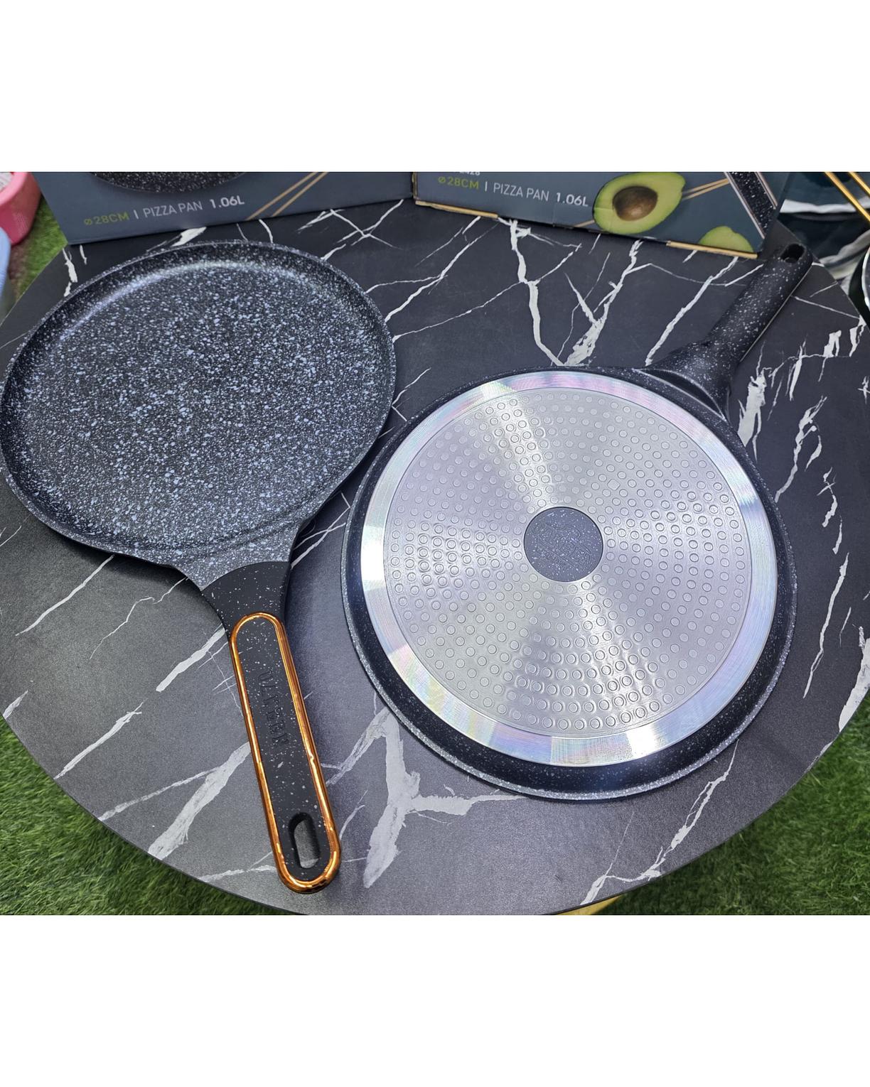 Upgrade your kitchen with this Premium 28cm Die-Cast Granite Cookware Pan, designed for superior heat distribution and long-lasting performance. Its non-stick granite coating ensures effortless cooking and easy cleaning, while the heavy-duty die-cast body resists warping and enhances durability. Perfect for making pizza, chapati, pancakes, or sautéed dishes, this versatile pan works on gas, electric, and induction cookers. Ideal for modern kitchens looking for both style and performance in everyday cookware.